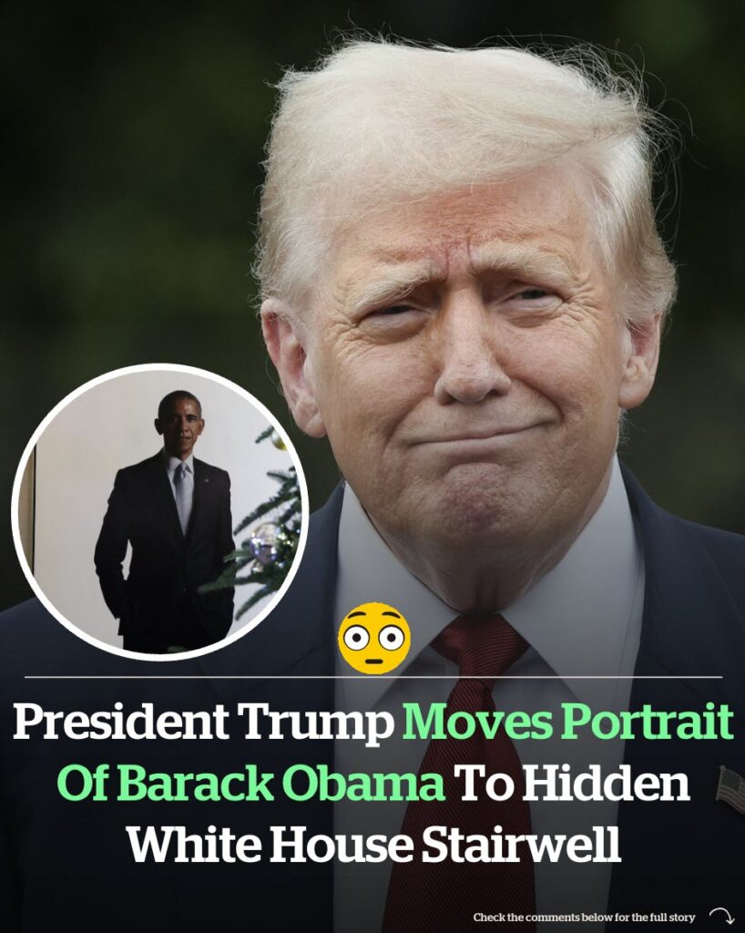 The portrait of former President Barack Obama has been moved from the White House entryway to a location where visitors cannot see it. People familiar with the change said President Donald Trump told staff to place it at the top of the Grand Staircase, which is not part of public tours.